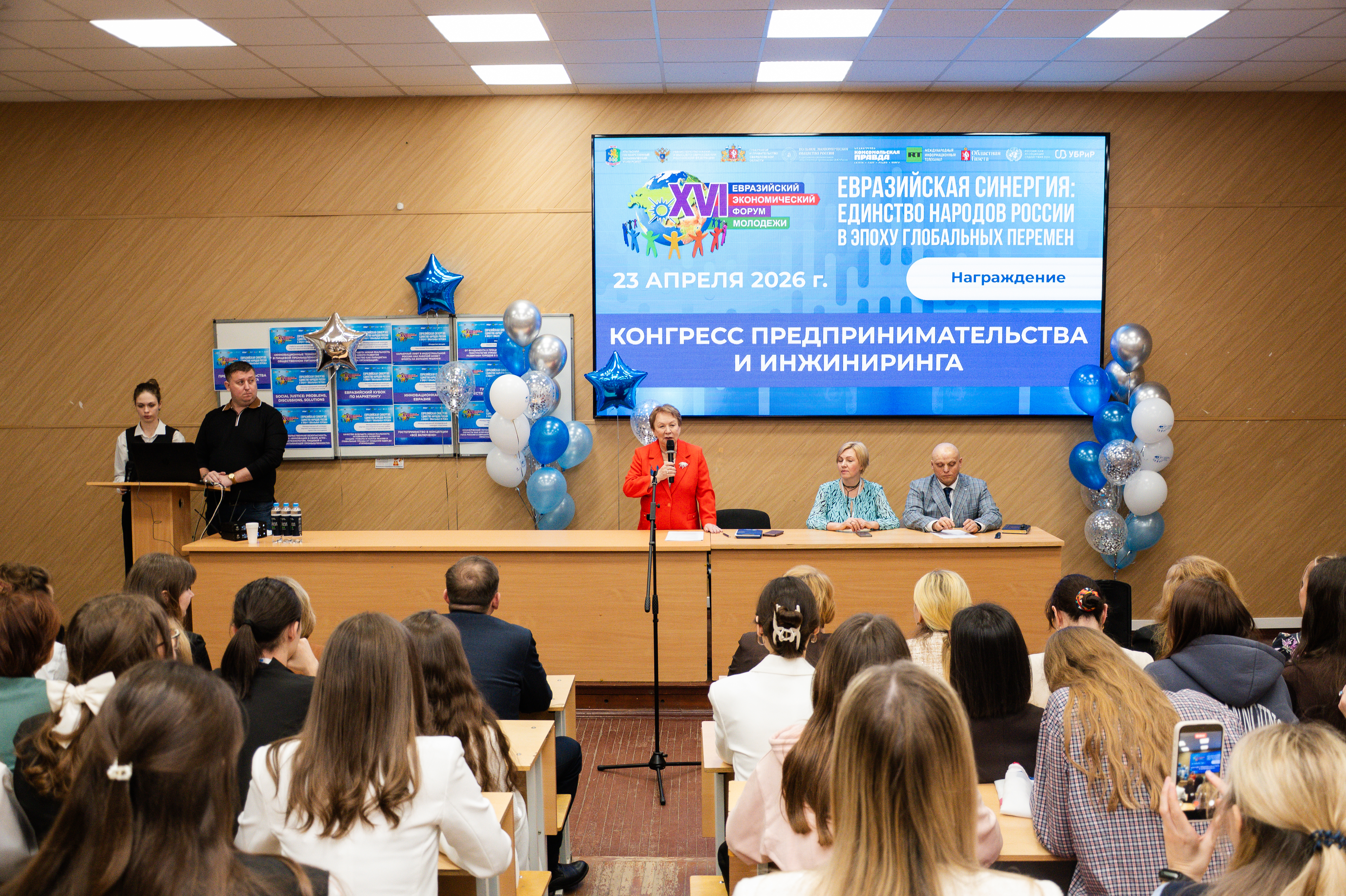 Сегодня в Уральском государственном экономическом университете прошло торжественное награждение победителей и призеров Конгресса предпринимательства и инжиниринга по восьми направлениям в рамках XVI Евразийского экономического форума молодежи.